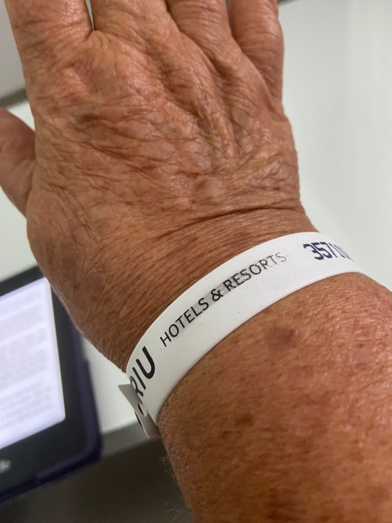 I got to wear this adorable bracelet the whole time I was there…..it identified me as a paying guest, since it was an “All Inclusive” resort — EVERYTHING was included in my room rate – the room, food, drinks, amenities, etc….with just a few exceptions, like the spa services, day trips off resort, shopping, and gratuities.