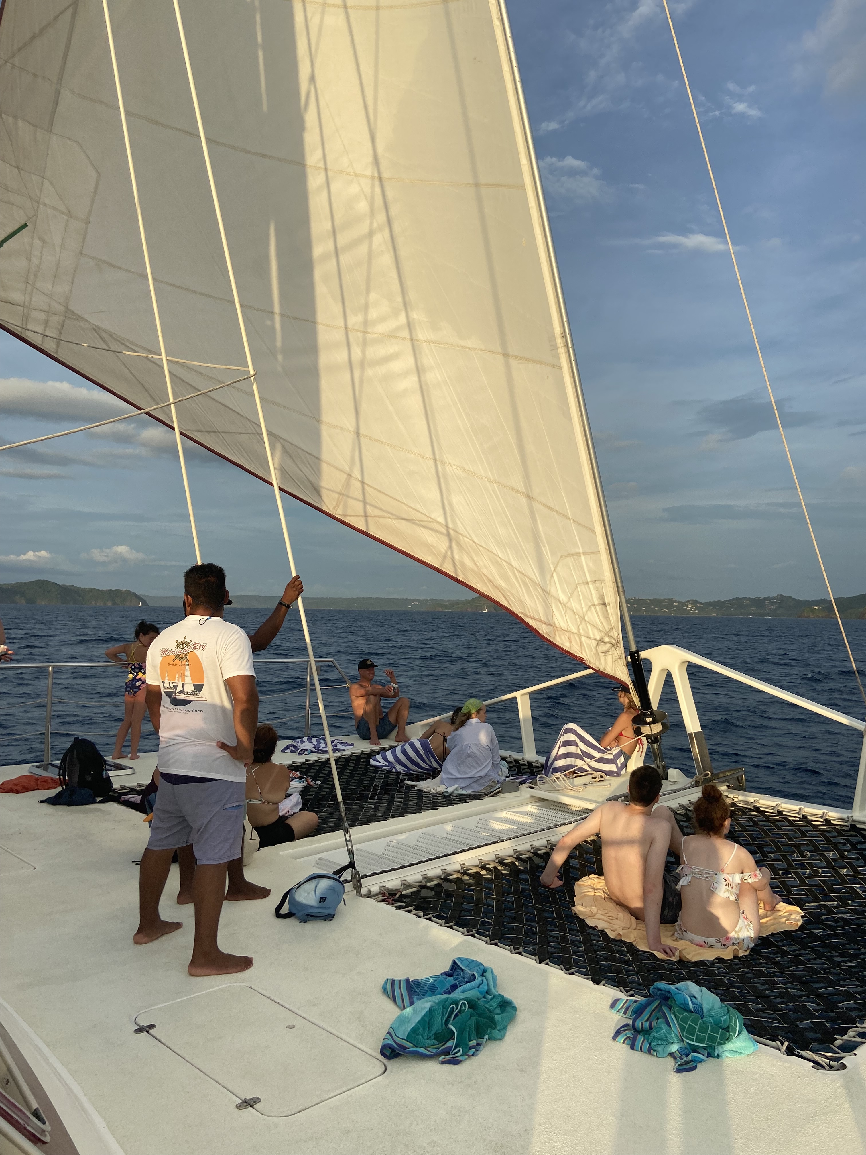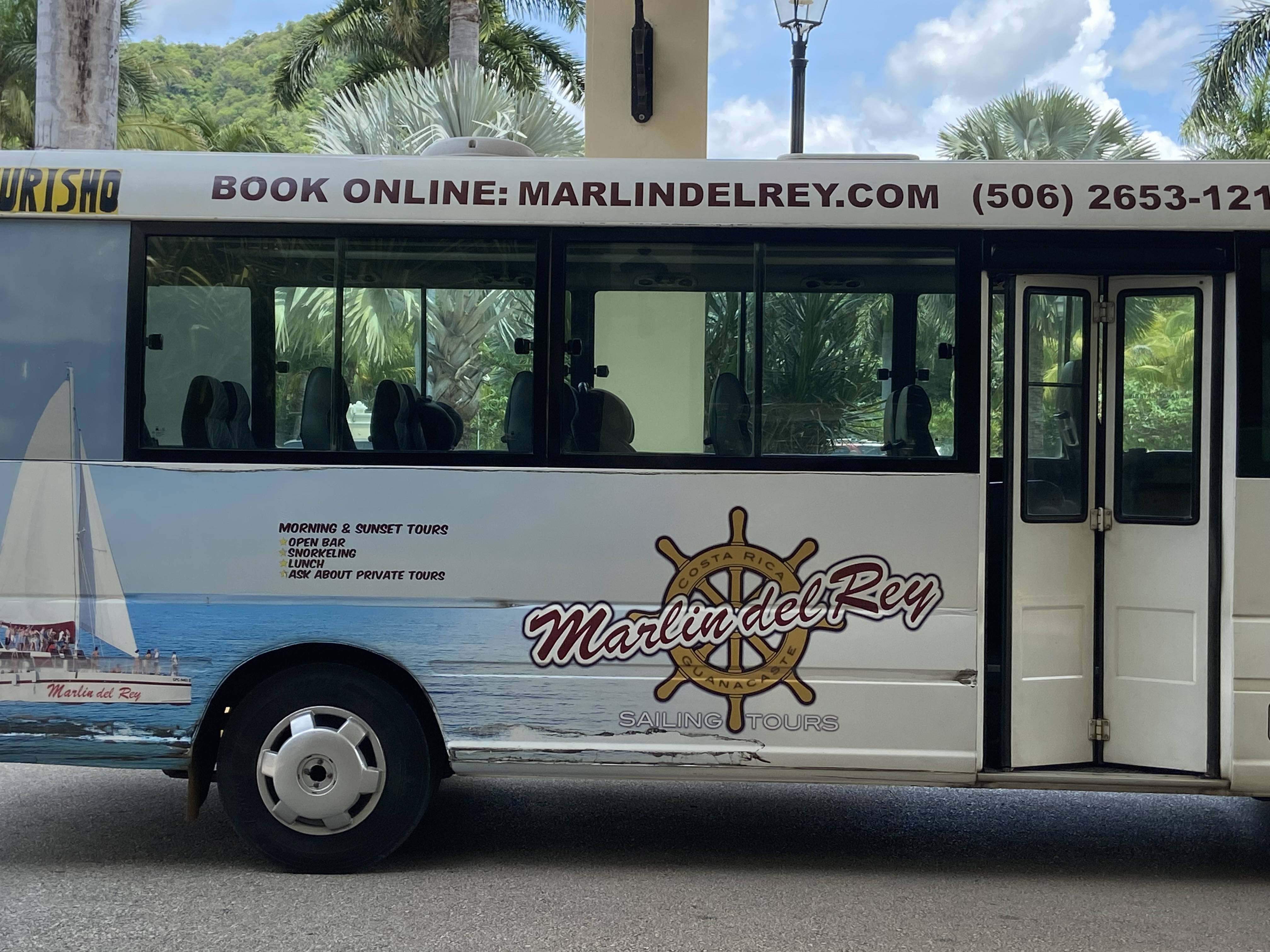 The first day trip I took was a sunset catamaran tour by Marlin Del Rey Tours. The bus for the sunset cruise picked us up about noon-ish. It was a long drive to Playas del Coco (Coco Beach) where the catamaran cruise started. I would have liked more time to spend at Coco Beach – it looked like a nice area to just hang out, shop, and eat! But, we had to get on the catamaran and when we got back, it was dark and we had to get on the bus back to the resort.