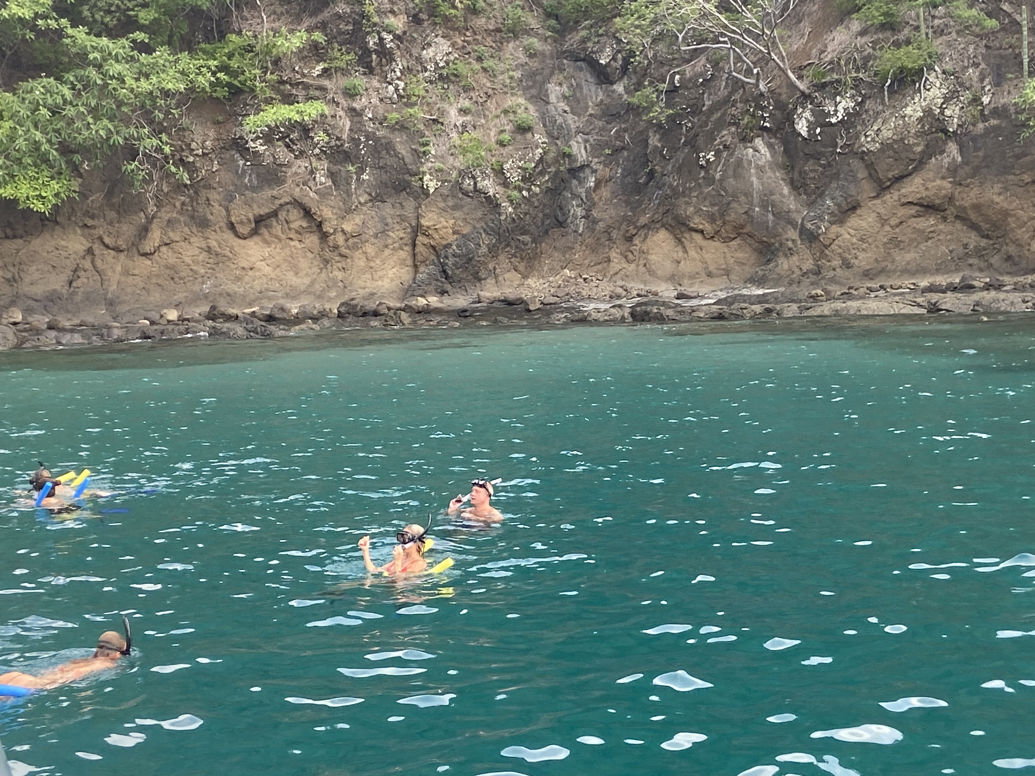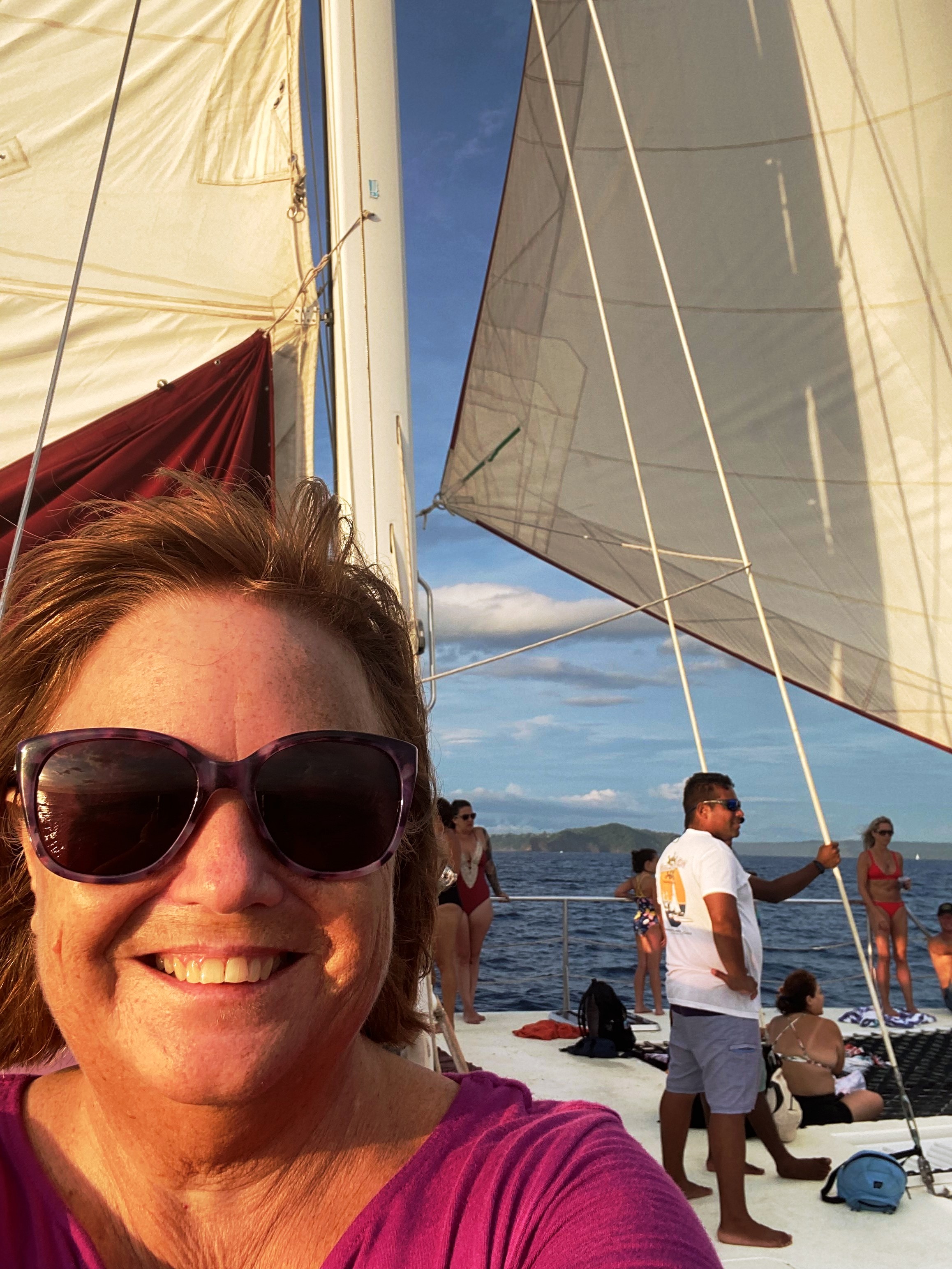 The cruise was amazing……we sailed all long the coast of Costa Rica to a cove where we could get out and swim or snorkel or take the dingy to the beach. I opted to stay on the catamaran and enjoy the views and the fresh air and sunshine — I’m not a strong swimmer and hyper-ventilate when I attempt to snorkel, so wasn’t comfortable getting out into the ocean and I certainly didn’t want to have to get back in that dingy after visiting the beach! But, I had a wonderful time without that part…..I LOVE being on a boat in the water, so I was perfectly happy just enjoying that!