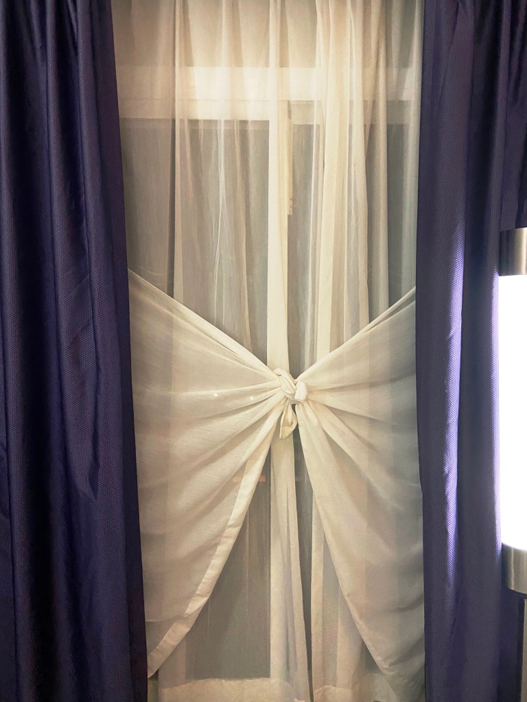 And…….much to my surprise and excitement……there were towel animals left in my room!!! One night, instead of a towel animal, they tied the sheers on my balcony doors in a pretty bow!!! YAY!!! Loved it!!!