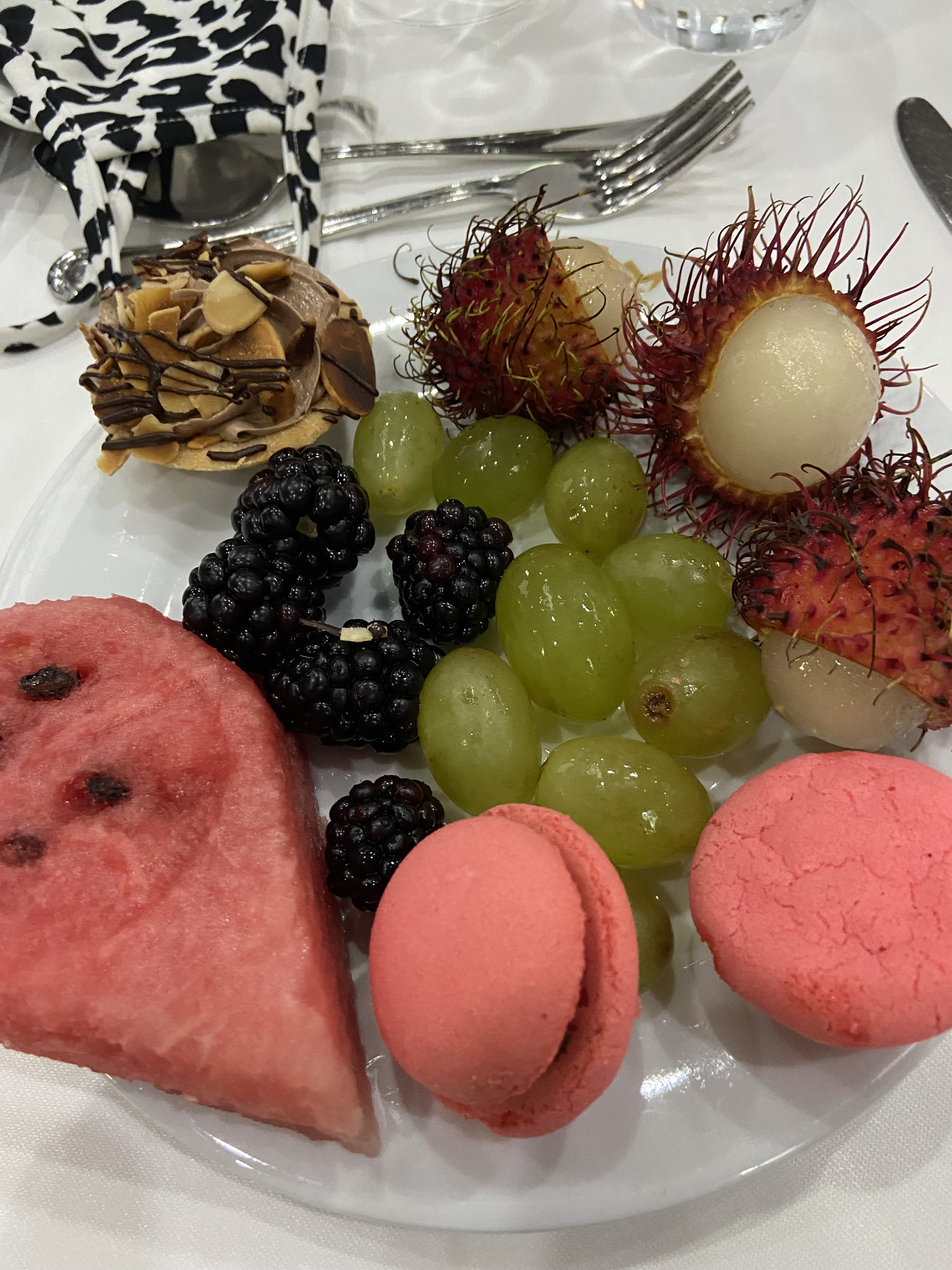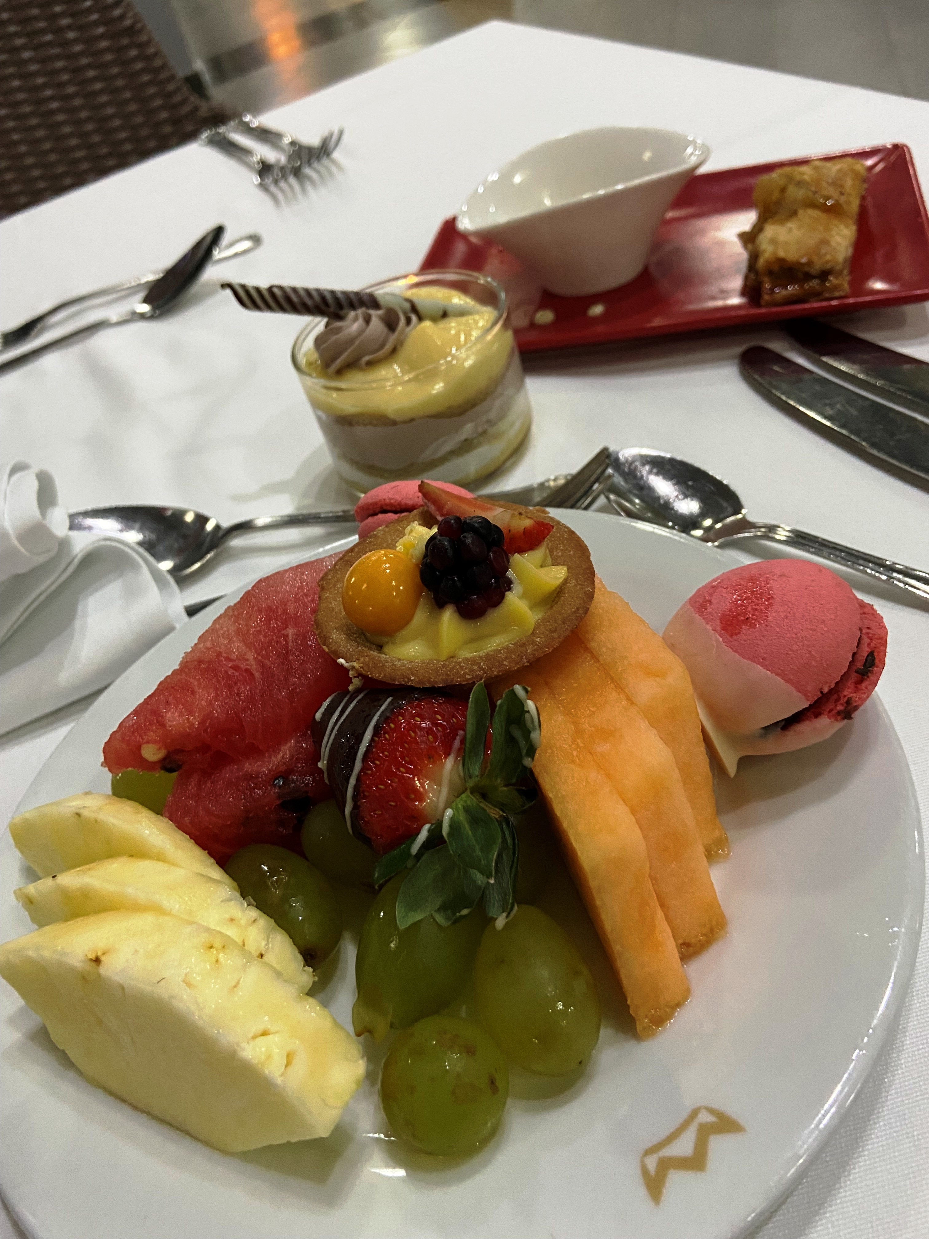 I had a big lunch on the first day trip and we got back after sunset, so I just grabbed some fruit and dessert from the buffet on this particular dinner night