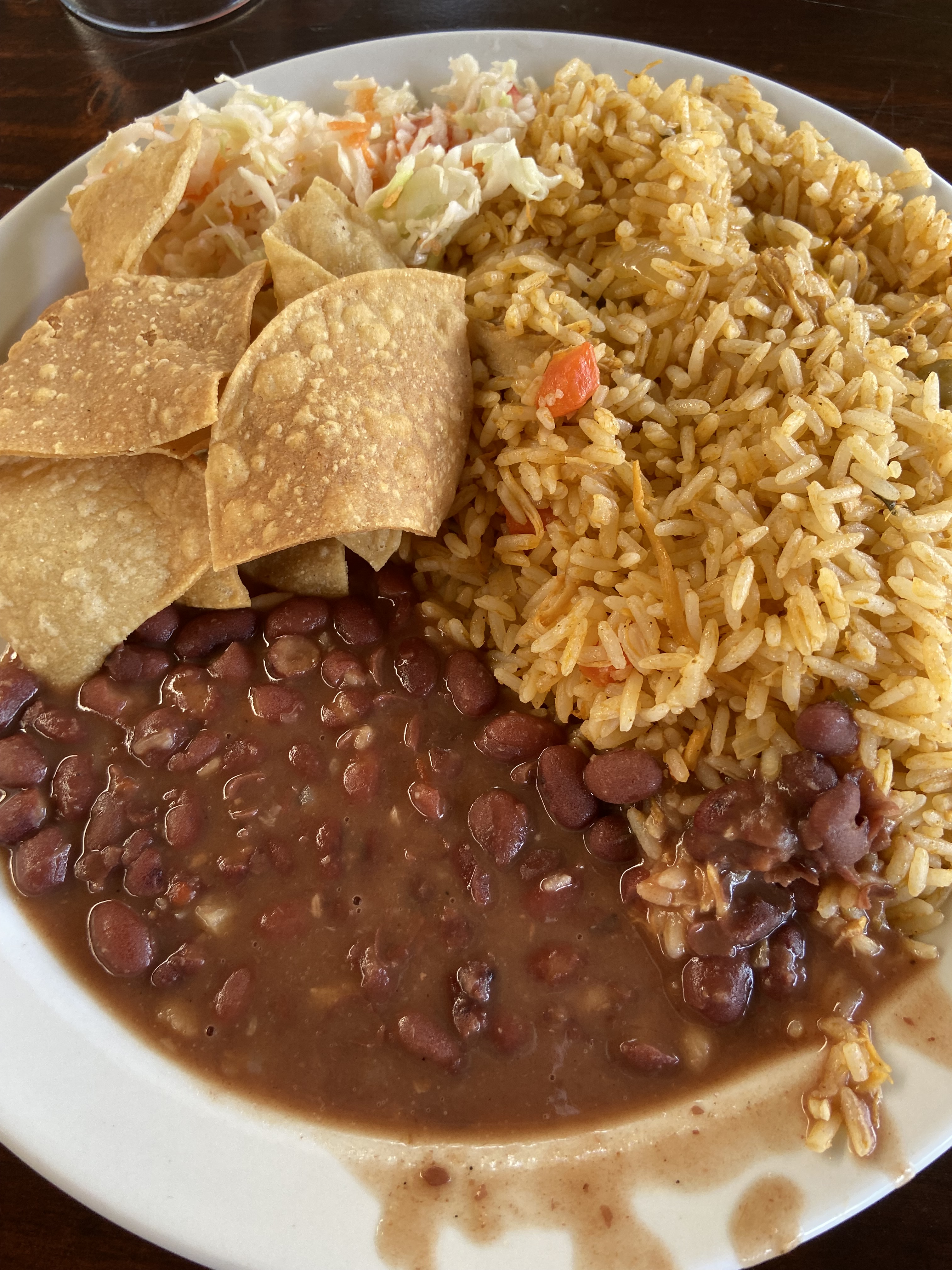 When we finished the river cruise, we had lunch – our guide told us our lunch would be chicken rice and beans and that “we eat a lot of that here – for breakfast we have rice and beans – for lunch we switch it up a bit and have beans and rice”! LOL It was so good — the rice was amazing with bits of chicken in it and the tortilla chips were great! I’m not a big beans fan, but they were very good and I ate quite a bit of them. There was also cole slaw. It was all so good — just WAY too much to eat!!!
