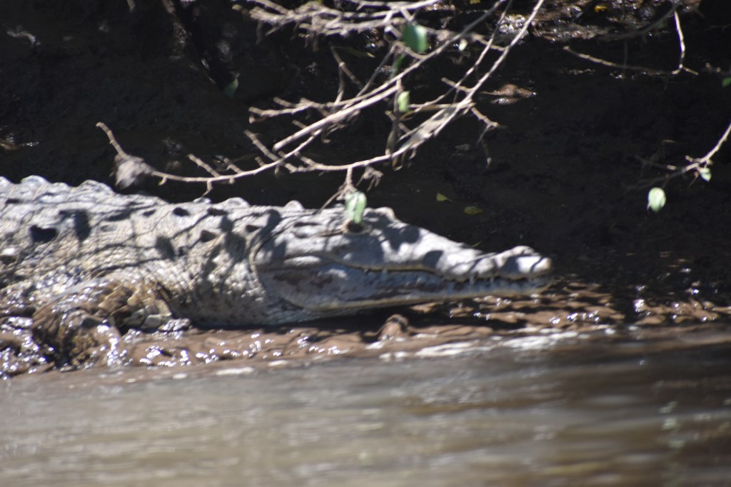 Our guide and the boat captain were on the look out and pointed out all the animals and birds with a laser pointer and told us a bit about each one. We saw a lot of crocodiles (there are no alligators in Costa Rica – only crocodiles and caimans). We also saw Basilisk Lizards – aka Jesus Christ Lizards because they run on top of the water, tiger herons, iguanas, kingfishers, a couple beautiful pink Roseate spoonbills that took flight for us (I saw one once in Zoo America at Hershey Park in PA – huge and stunning bird – never thought I’d see one in the wild, but now I have), and several other critters. It was so cool!!! The boat captain slowed down and got as close as he could whenever we came up on an animal.