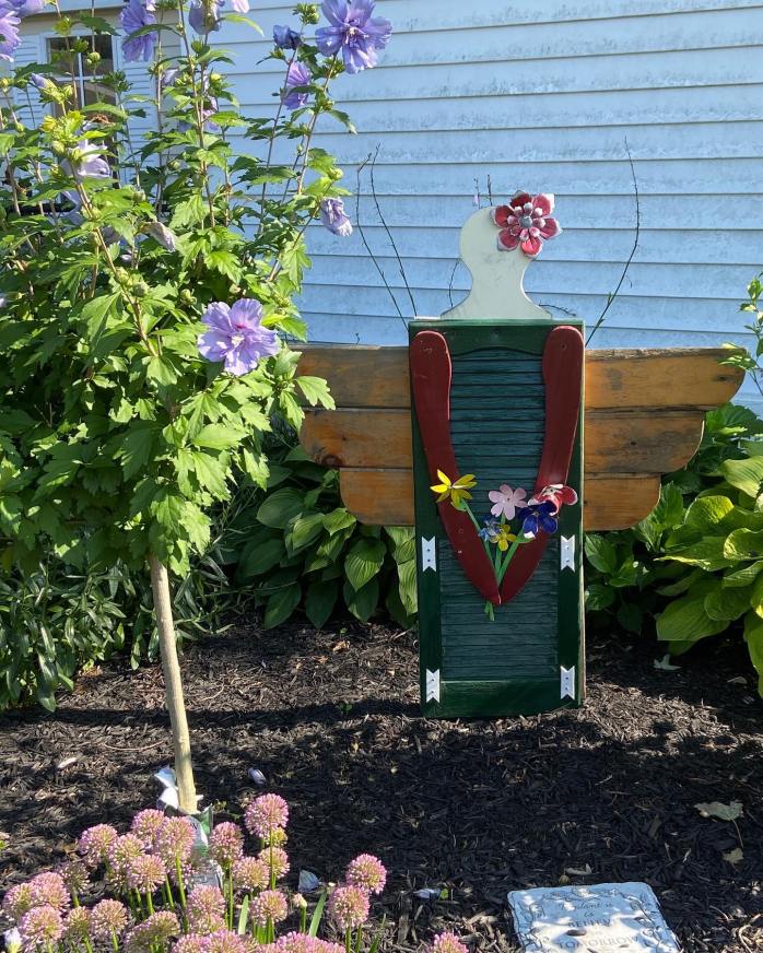 Garden Angel my brother made for me from a shutter and boards from our Mom’s house