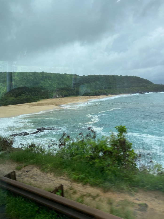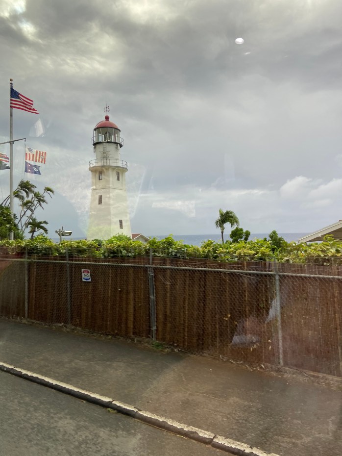 On our last day, we pulled in to Honolulu on Oahu to end the cruise. I walked the gangway to leave the ship for the last time about 9:00 am, gathered my luggage from the security area, and got on a bus for one last tour. My return flight was scheduled for 9:30 PM, so I had all day on Oahu – I chose a full day tour that went all over the island and ended at the airport. The day ended up being long and mostly boring, but it served the purpose of killing time and giving me a final few hours to stretch out my enjoyment of the beauty of Hawaii! The tour was OK and the guide was good – his name was Tommy Chong, believe it or not!!! LOL He told us he got to meet the real Tommy Chong and Cheech once and showed us a photo of him with them. The tour was 8 hours of mostly driving with pointing out drive by points of interest and a few stops and a really crappy lunch. But – I did see some beautiful sights and got to enjoy some more Kona coffee and Macadamia nuts at a Macadamia nut farm!!! I was most looking forward to the Dole Pineapple Plantation – the main reason I chose this particular tour, but our stop wasn’t enough time to do the train tour, so we really only got to do the gift shop and have a treat of some kind – I had a cup of fresh pineapple that was amazing!!! So not a totally bad day, but really wish I wasn’t trapped on that bus so long! LOL Most of the photos on this post aren’t as good as the other posts because a lot of them were taken through the bus window as we drove by! Oh well…..better than no photos, right?
