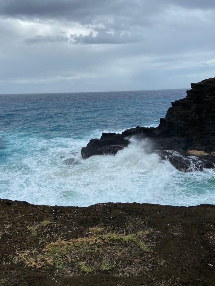 This was our lunch stop — as you’ll see in the next few photos, this was a gorgeous cove with crashing waves, beautiful rock formations, and a BLACK sand beach!!!