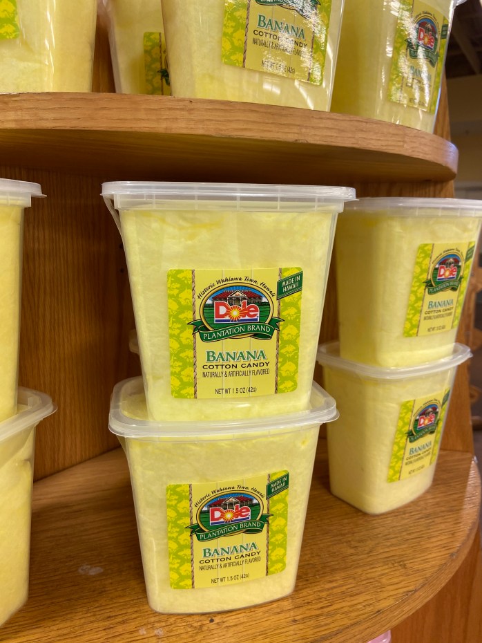 I was intrigued by this banana flavored cotton candy display — not enough to buy any, but it still caught my eye!