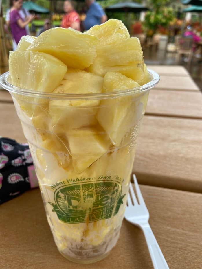 I bought this huge cup of fresh pineapple at the plantation — it was soooooo good!!!