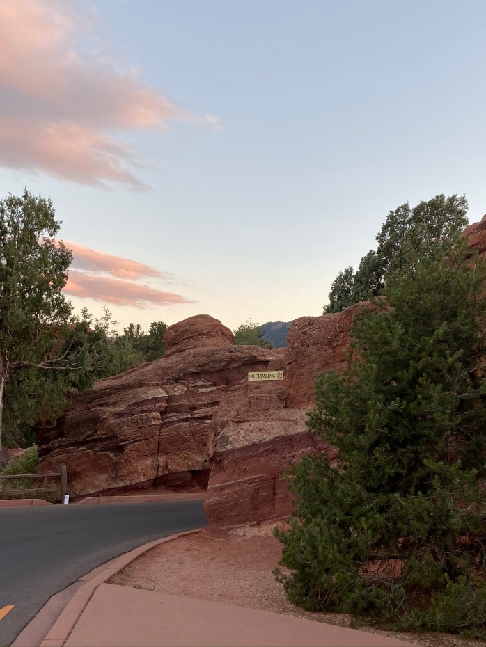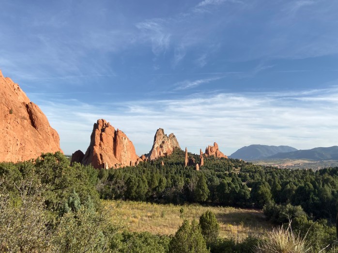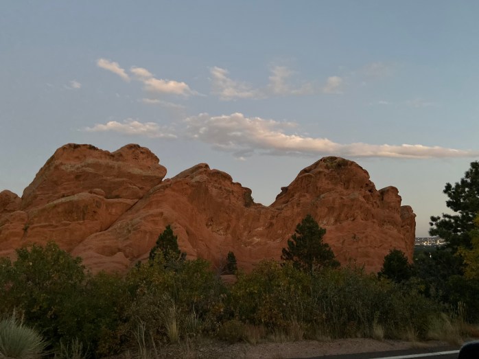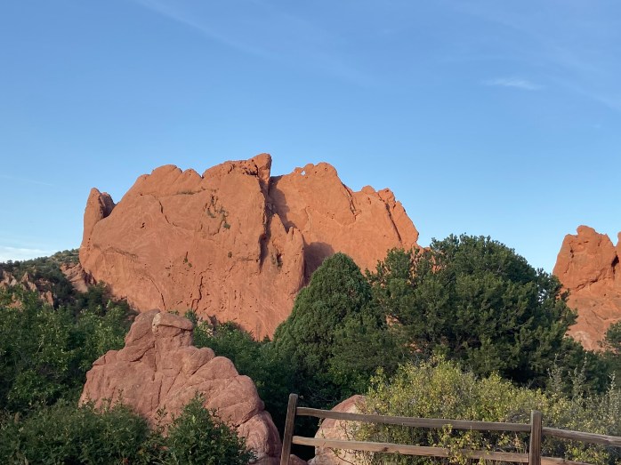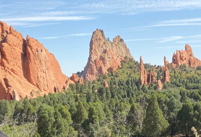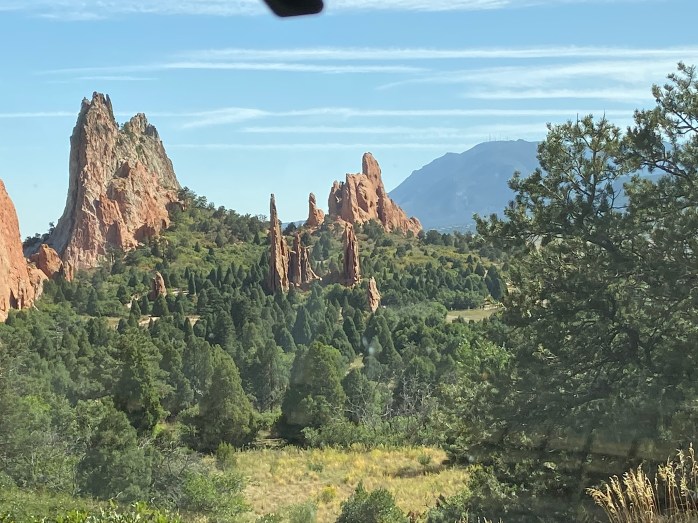 The absolute highlight of my time in Colorado was visiting Garden of the Gods! I was close enough that I could drive through it every day…..and, I did!!! It was part of a tour I took and we spent a lot of time there learning all about it. But, I went back and spent more quiet time there a couple times and at least drove through it every day. It is so awe inspiring! The story we heard on the tour was that in August 1859, two surveyors from Denver City set out to formally locate Colorado City – what is now known as Old Colorado City (see my first Colorado post). While exploring the area, they came upon this area of sandstone rock formations. One of the surveyors suggested it might be a good place for a “beer garden” – the other one countered that it is more fitting as a place for the Gods to assemble and declared it called “Garden of the Gods” and it is still known by that name to this day. The area is all natural formations – no human intervention altered the formations in any way. In 1879, Charles Perkins, president of the Chicago Burlington Quincy Railroad, purchased much of the land – 240 total acres. After his death, his family gave the land to the city of Colorado Springs at his request to be used as a park – with the stipulation that it be known as Garden of the Gods and that it remain free forever to all visitors. In 1909, it was dedicated as a free city park and is registered as a national natural landmark. The formations are sandstone and tower 300 feet in the air!.In the early 1900’s, a Trading Post was added that is still there, today, and is still operated as a trading post……with LOTS of pretty awesome stuff in it! They also have a Visitors Center, but I didn’t stop there, so can’t speak to it…..I understand it is pretty cool and interesting, though!