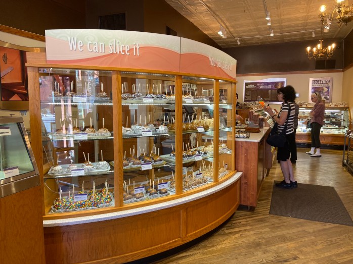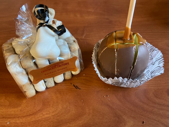 While wandering around after dinner, I found the original Rocky Mountain Chocolate Factory…..who could resist that? I stopped in and almost went into a sugar coma just looking at the displays! I got a chocolate covered apple to take back to the hotel and some homemade dog biscuits to bring back for Megan! (Full disclosure – I went back another evening for another one of those apples)
