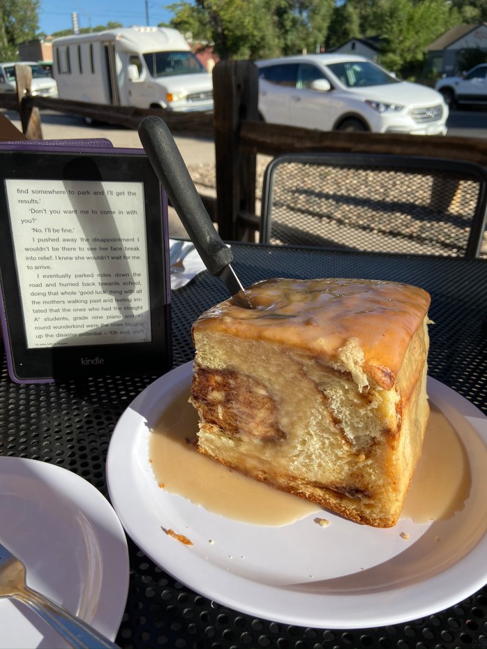 The second time I was there, I overheard some other guests mention the “amazing” cinnamon rolls……so, of course, I asked about it! The waitress asked if I wanted it to eat in or take out…..I said eat in and she suggested I eat some here and take the rest with me……I soon found out why – it was HUGE!!! The size of a cake big enough to feed a small country! I ate a few bites and did take the rest with me……unfortunately, it didn’t live up to the hype and I never finished it! But, I can now say I’ve had the World’s Largest Cinnamon Roll!!! hahaha