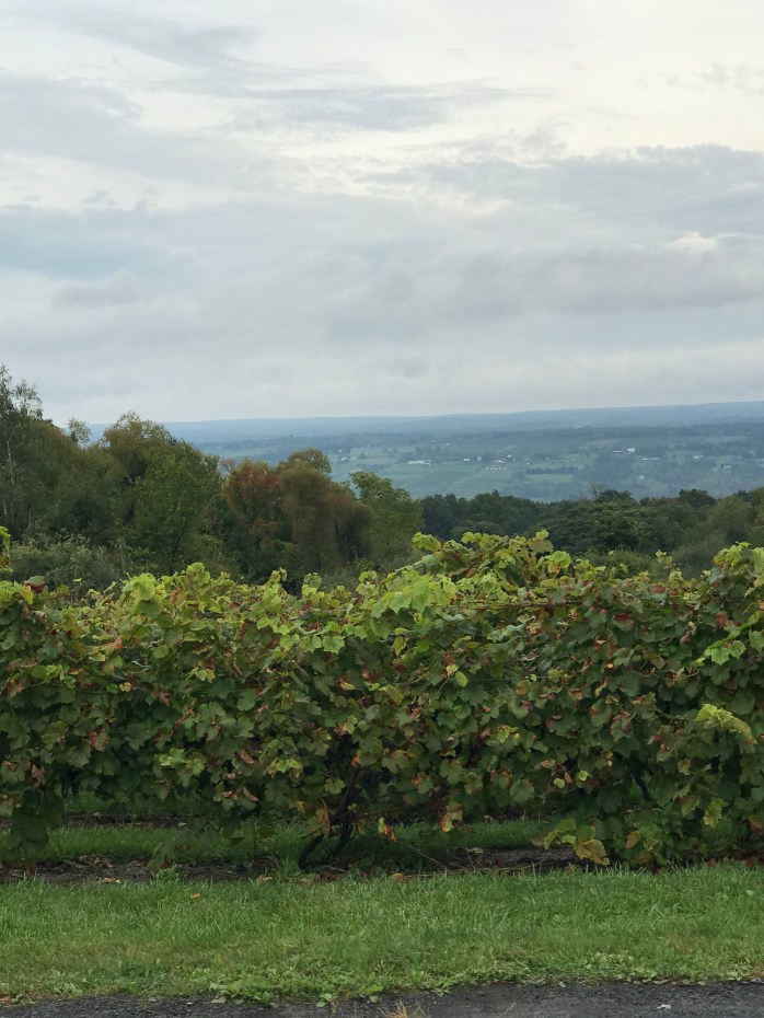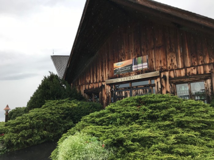 This past Tuesday, a friend and I went on a day trip bus tour with the Busy Buddies group. It was a wine tasting tour with stops at three wineries in the Finger Lakes and a lunch cruise on Seneca Lake in Watkins Glen. I had been looking forward to this day trip – I love the Finger Lakes and have not been to Watkins Glen since I was a child! I woke up that morning and it was raining – HARD – and the forecast showed heavy rain, including possible thunderstorms, and cooler temperatures all day! I hoped it wouldn’t ruin the day! As it turned out……it didn’t!!! It rained off and on and we had to put our hoods up to get into a couple of the wineries without getting wet, but we were mostly inside and the rain let up at key times to let us enjoy the day! As for the boat ride – it rained while we were eating and then the sun came out and it warmed up when we were done with lunch so we could open the windows and enjoy the view! Perfect cooperation from the weather!