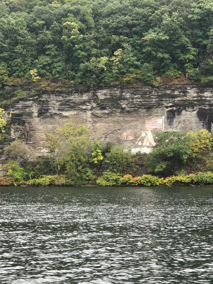 Painted rocks — parts of this was actually painted by the Seneca Indians long ago — the flag and tee-pee were added later.
