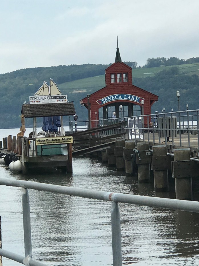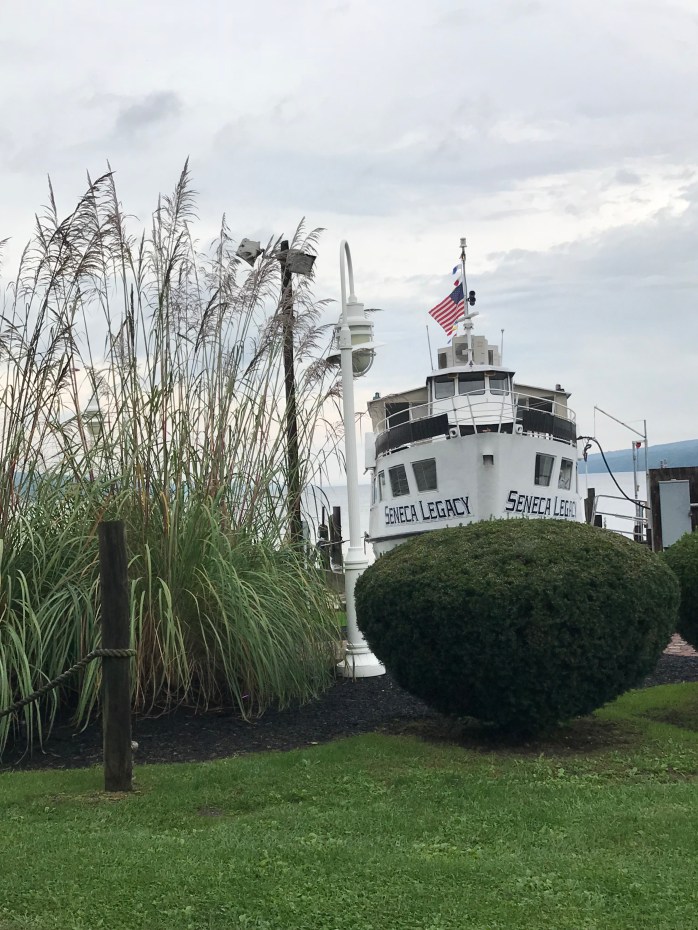 Next stop was the lunch cruise on Seneca Lake. It was a very nice two hour cruise – the food was INCREDIBLE!!!! Usually, I find the food on these lunch cruise things to be “OK” and sometimes a little less than “OK” – usually a buffet. This was a sit down meal served by waiters with table cloths and real silverware!!! We had the choice of roast beef or chicken – I had the roast beef and my friend had the chicken…..both offerings were sooooooo good!!! And, the scenery was beautiful and the weather, once it stopped raining after lunch, was quite pleasant, in deed!