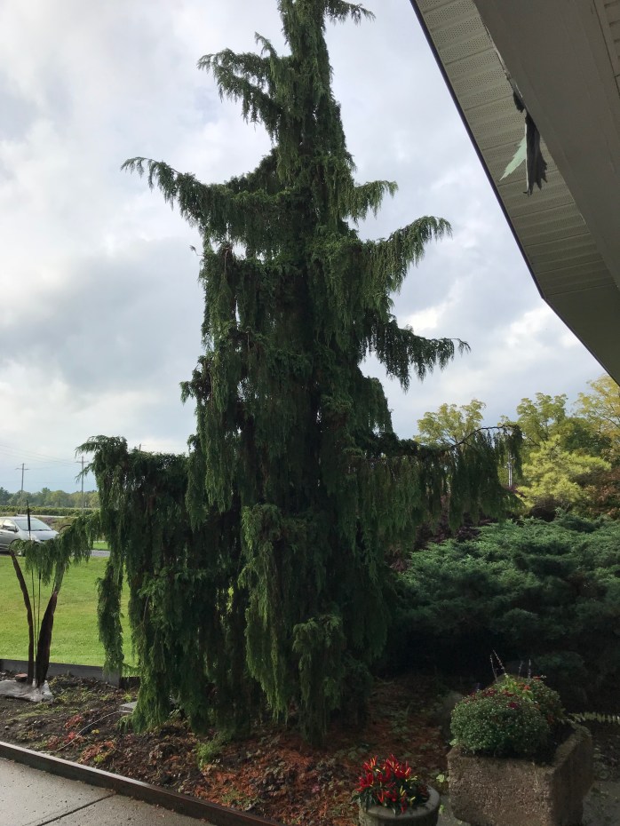 I was amazed at the beauty of the trees on either side of the entrance —- they are Weeping Alaskan Cedars! So whimsical!!!