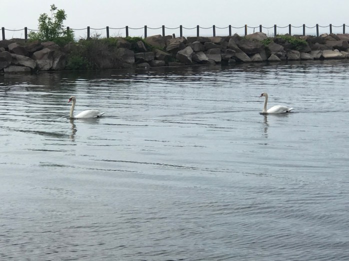 We went to Point Breeze to have dinner at the Black North Inn on Friday and watched some swans coming in off Lake Ontario and making their way down the Oak Orchard River: