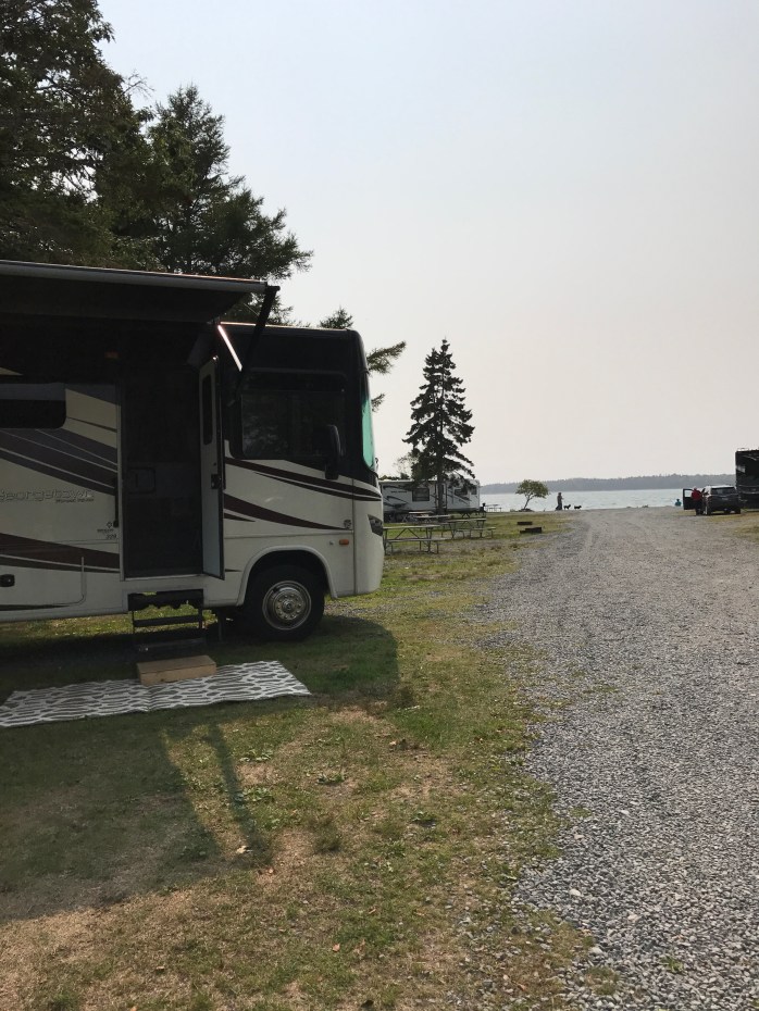 Our campsite at the KOA — just a stone’s throw from the shore!