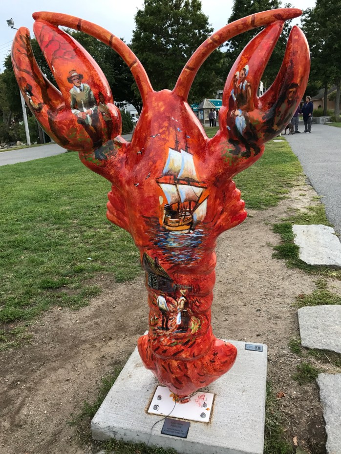 All of the following lobster sculptures are painted by local artists in Plymouth, MA: