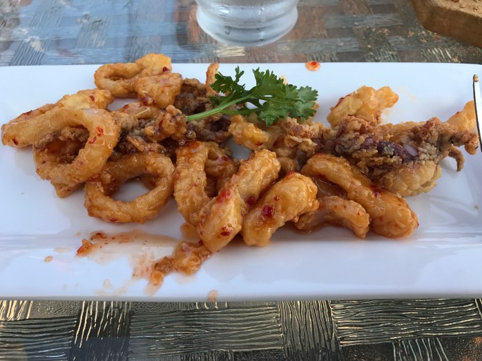 Calamari with Spicy Thai Chili Sauce…..appetizer before the lobster…..in Gloucester, MA