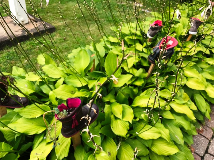 Along the walkway to the artist shop, we found these shoes on sticks with portulaca growing in them among the hostas! How cute is that!!!???