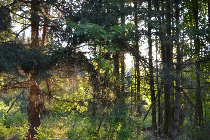 In the back of the cemetery, the sun was so pretty shining through the trees…