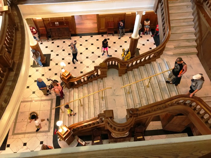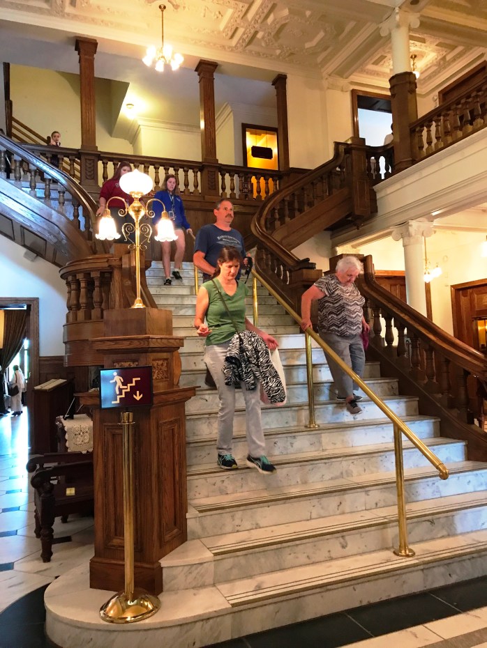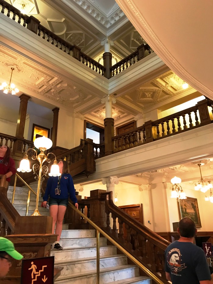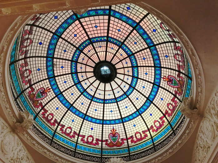 From the third floor, you can look up to this incredible stained glass dome…..AWESOME!!!