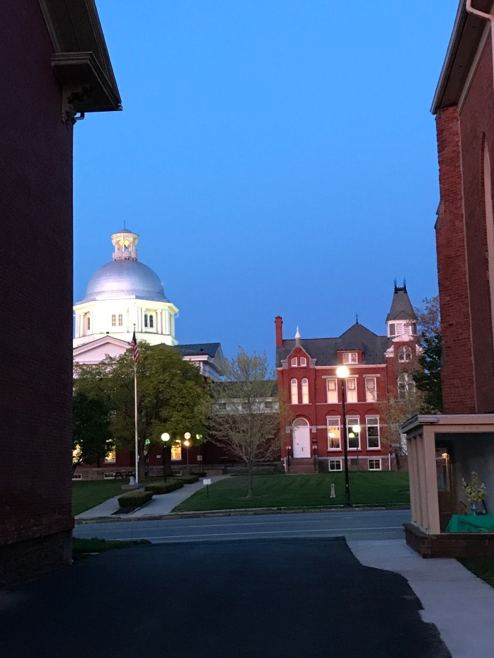 I searched and searched and couldn’t find a creative rectangle to meet today’s photo prompt! Then, I stepped out of the side door at church this evening after choir practice and BAM – there was my rectangle……I always LOVE this view of the Orleans County Courthouse and County Clerk’s Building from this vantage point – framed between the two buildings! Especially on a gorgeous evening!
